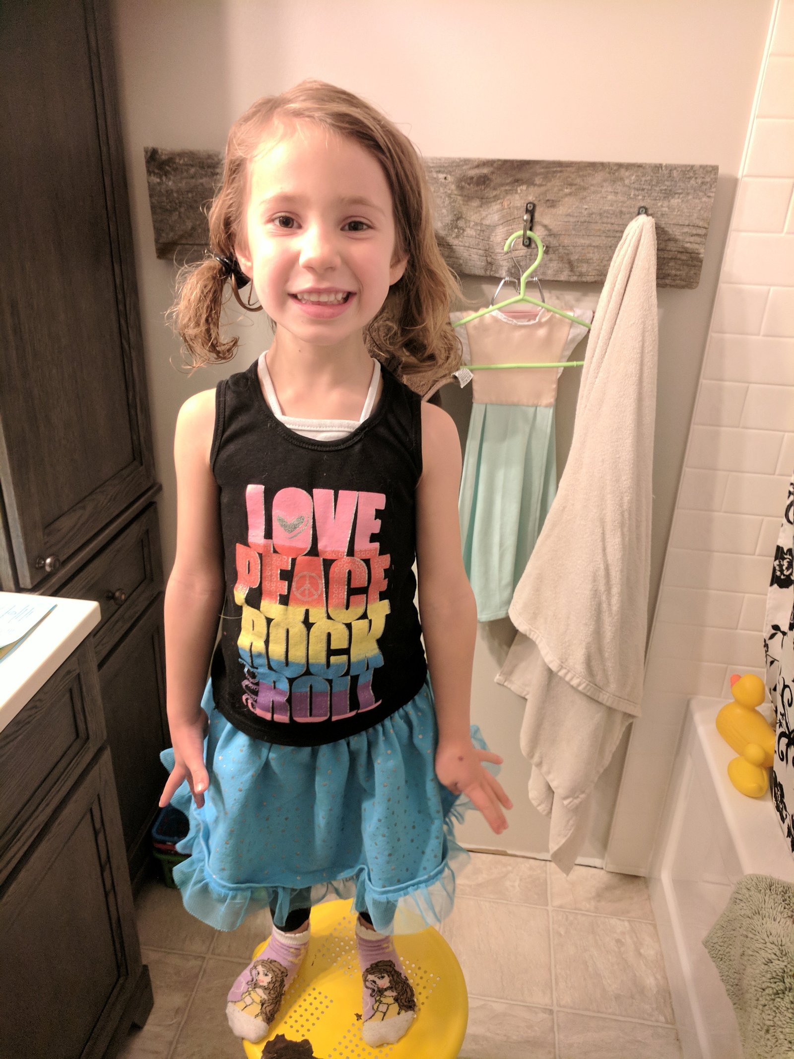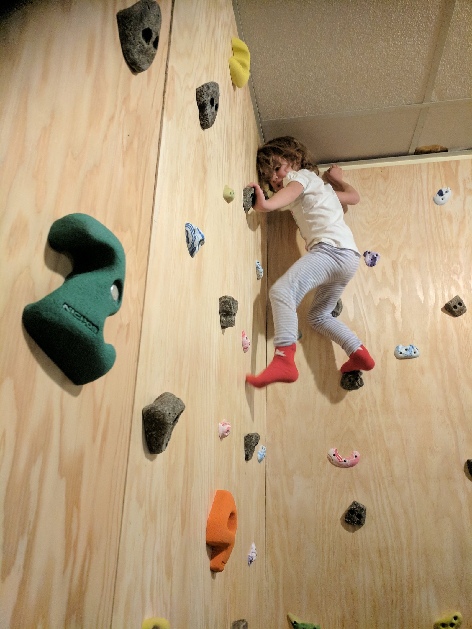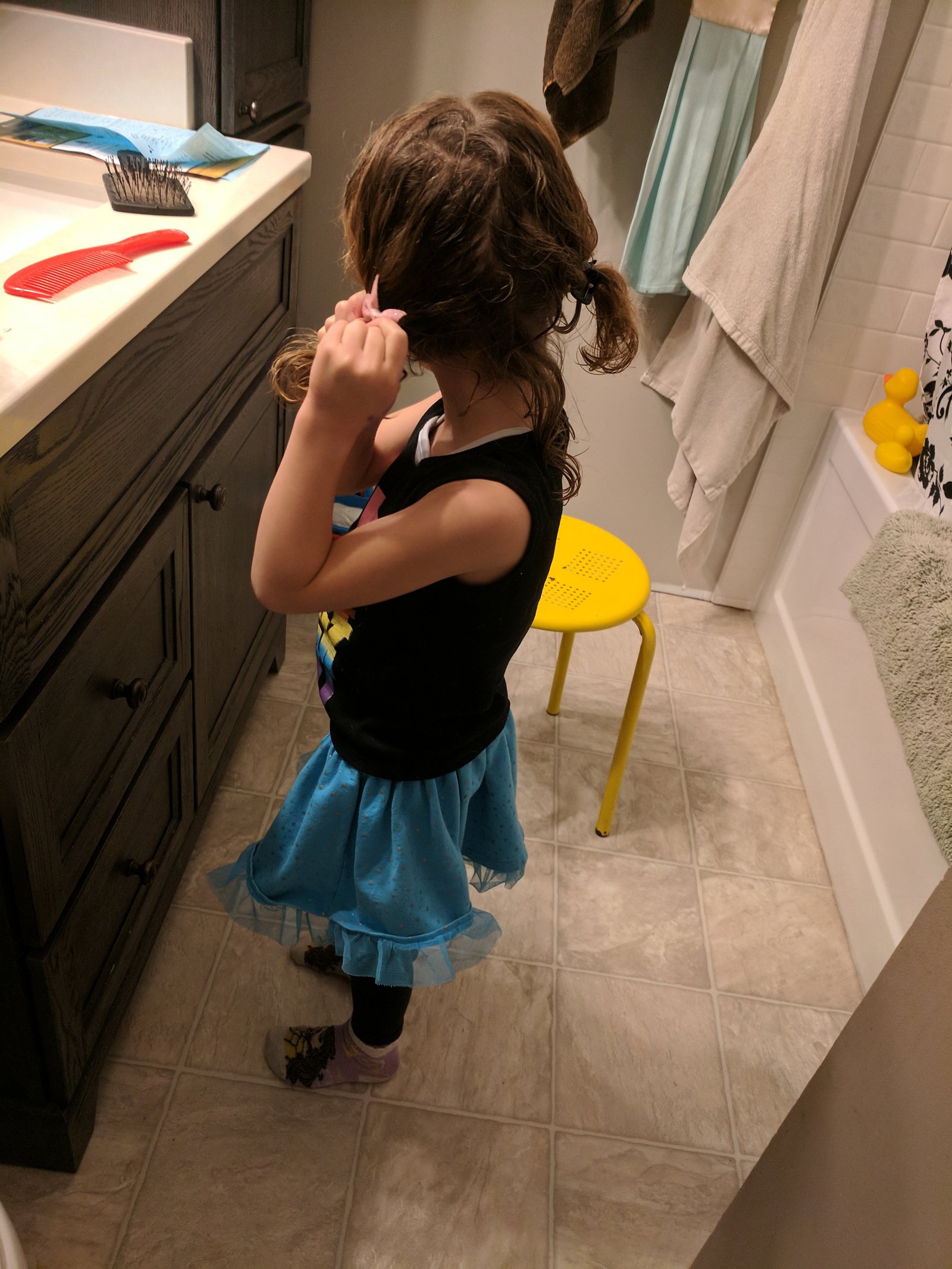 Tori has mastered climbing to the top of her climbing wall and has almost mastered doing her own hair for school. She is so much fun!